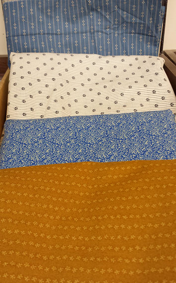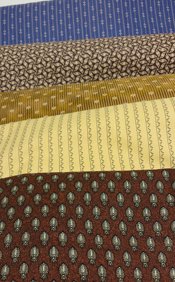 OK, I admit it -- I have too much fabric! I've over bought for our inventory construction, so you can be the beneficiary! We have a good selection of first quality 19th century reproduction cottons on sale at $7 a yard!!! We have pieces from a couple of yards to full bolts -- but it's all top quality and priced at only $7 per yard.