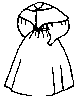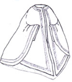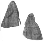 All sizes in one envelope. Simple circular mid calf length cape with hood, hooks at the neck.