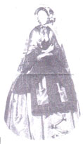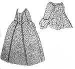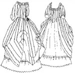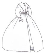 A Daydress of the 1850s. The front is gathered with a pagoda sleeve. Use with Flounced skirt pattern (#602).