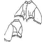 Two different jackets in one pattern. The first has a pleated tail and rounded collar. The second has ruffles at the neck and sleeves.