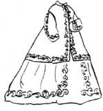 A girl's Zouave jacket with pointed front skirt full enough to fit over a hoop.