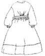 Simple unlined gathered bodice with pleated skirt. Full cuffed sleeves can be rolled up.