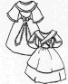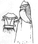 An oval neckline dress with detachable fishu. Simple for camp life or fancy for teas. Has an option for double skirt.