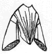 Pointed front, straight across the back with a pleated berthe along the front and back neckline.