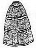 One size fits all. A long or short version used to dress up a plain skirt. It may be made of expensive lace for use over ballgown skin.